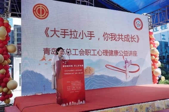 國(guó)家二級(jí)心理咨詢師、青島市總工會(huì)心理專家講師團(tuán)成員荊玉娟作專題講座