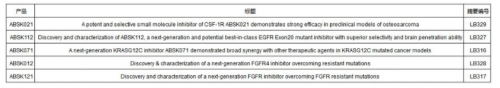 其中包括其自主研發(fā)的已獲中美雙突破性療法認(rèn)定 的CSF-1R抑制劑Pimicotinib(ABSK021) 和可能成為best-in-class的新一代克服耐藥突變的EGFR Exon20抑制劑ABSK112 ,以及新一代克服耐藥突變的FGFR4 抑制劑ABSK012和FGFR抑制劑ABSK121,新一代KRAS抑制劑ABSK071的最新臨床前和轉(zhuǎn)化醫(yī)學(xué)研究進(jìn)展。