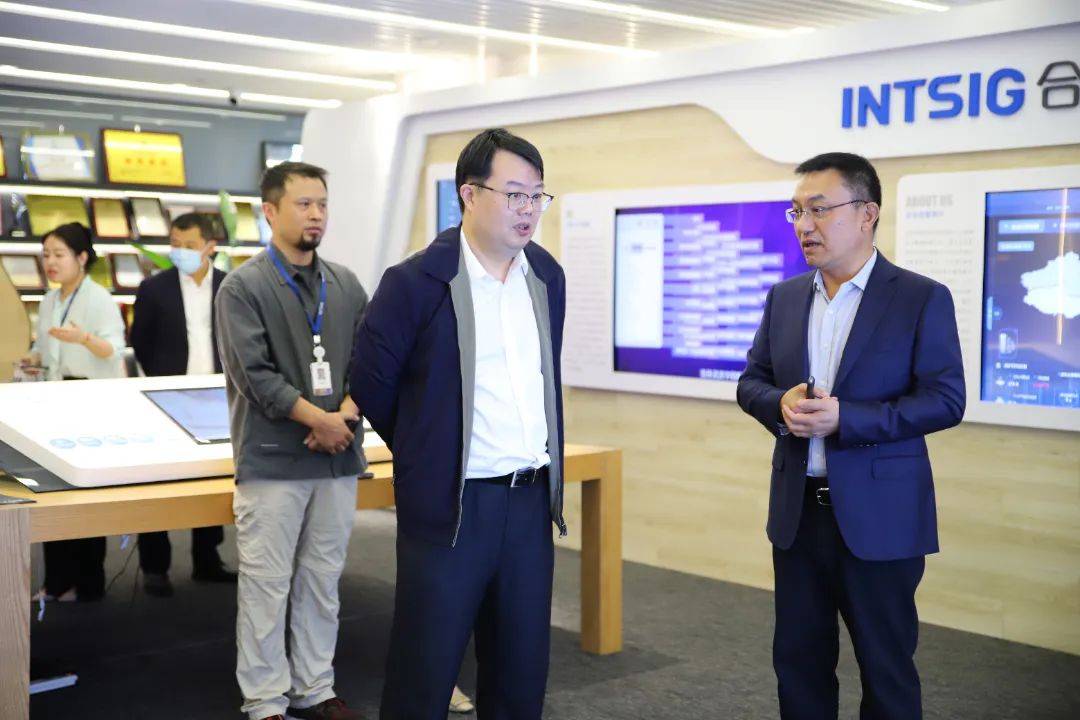 調(diào)研過程中,上海市金融工作黨委委員、市地方金融監(jiān)管局副局長管小軍一行首先參觀了市北高新園區(qū)企業(yè)AI體驗館,深入了解園區(qū)功能定位、特色產(chǎn)業(yè)布局、科技創(chuàng)新投入等情況。在園區(qū)大數(shù)據(jù)與人工智能領(lǐng)域代表性企業(yè)合合信息,公司董事長、總經(jīng)理鎮(zhèn)立新博士詳細(xì)介紹了智能文字識別及商業(yè)大數(shù)據(jù)技術(shù)及產(chǎn)品。