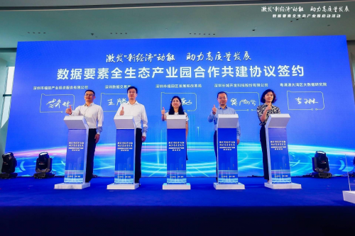 在福田區(qū)發(fā)展和改革局、深圳長城開發(fā)科技股份有限公司、深圳數(shù)據(jù)交易所、粵港澳大灣區(qū)大數(shù)據(jù)研究院、深圳市福田產(chǎn)業(yè)投資服務(wù)有限公司五方協(xié)同下,集資源,搭平臺(tái),顯優(yōu)勢,謀求協(xié)作發(fā)展互惠共贏,攜手推進(jìn)數(shù)據(jù)要素全生態(tài)產(chǎn)業(yè)園建設(shè)。