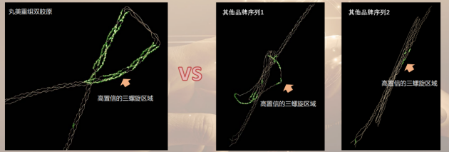 “三股螺旋”結(jié)構被稱為“房子的屋梁”,對膠原蛋白的生物活性表達至關重要。而在業(yè)內(nèi),真正實現(xiàn)三股螺旋結(jié)構的膠原蛋白原料寥寥無幾。