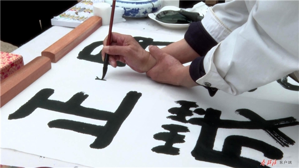 在農家小院,閻正正在聚精會神地揮毫潑墨,他在筆墨的運用上別出心裁、匠心獨運,流暢的線條蒼勁有力,書法作品淋漓盡致地展現(xiàn)于尺幅之上。談起他創(chuàng)作的靈感,閻正說,“莊浪歷史悠久、文化底蘊深厚、森林植被覆蓋率高,儼然一幅天然山水畫。莊浪縣云崖寺自然風光秀麗,石窟藝術精美,有遠山、有水庫、有寺廟,它完全具備中國畫的每一個條件?!?/p>