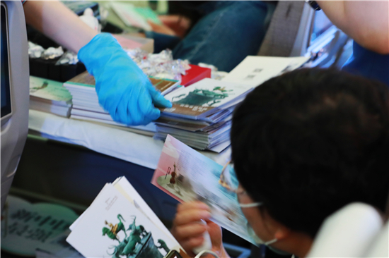 “云南被稱為什么王國?”“云南省博物館里有一個文物有兩頭牛一只老虎,這件文物叫什么?”“央視《國家寶藏》中云南省博物館入選了三件文物,是哪三件呢?”旅客在與乘務(wù)員精彩互動的過程中紛紛聊起了文物故事,翻看起文物畫冊。