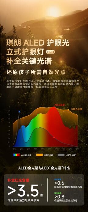 為此,琪朗以“為人類創(chuàng)造舒適的健康光環(huán)境”為使命,致力打造中國(guó)千萬(wàn)兒童房專用護(hù)眼光環(huán)境。2022年,琪朗聯(lián)合中山大學(xué)中山眼科中心共同研發(fā)全新專利技術(shù)ALED護(hù)眼光。新一代ALED護(hù)眼光其原理是打造與太陽(yáng)光的可見光譜接近的照明光譜,通過降低有害藍(lán)光峰值,補(bǔ)全孩子眼睛發(fā)育關(guān)鍵的紅光波段,緩解孩子近距離用眼疲勞,延緩近視發(fā)生發(fā)展。自從愛迪生發(fā)明光源以來(lái),經(jīng)歷了白熾燈、鹵素?zé)簟晒鉄?、LED燈后,ALED護(hù)眼光是人類史上最近接太陽(yáng)光譜的光源,其光源更護(hù)眼,更舒適,更健康。