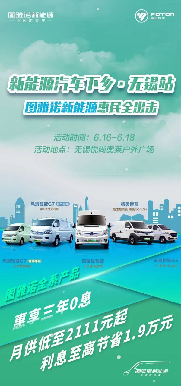 6月16日,2023年全國新能源汽車下鄉(xiāng)啟動儀式在江蘇無錫惠山盛大召開,福田圖雅諾攜風景智藍G7和精靈智藍E7強勢亮相,展示創(chuàng)新成果和實體經(jīng)濟的深度融合,助力鄉(xiāng)村振興,為生態(tài)可持續(xù)發(fā)展貢獻力量。