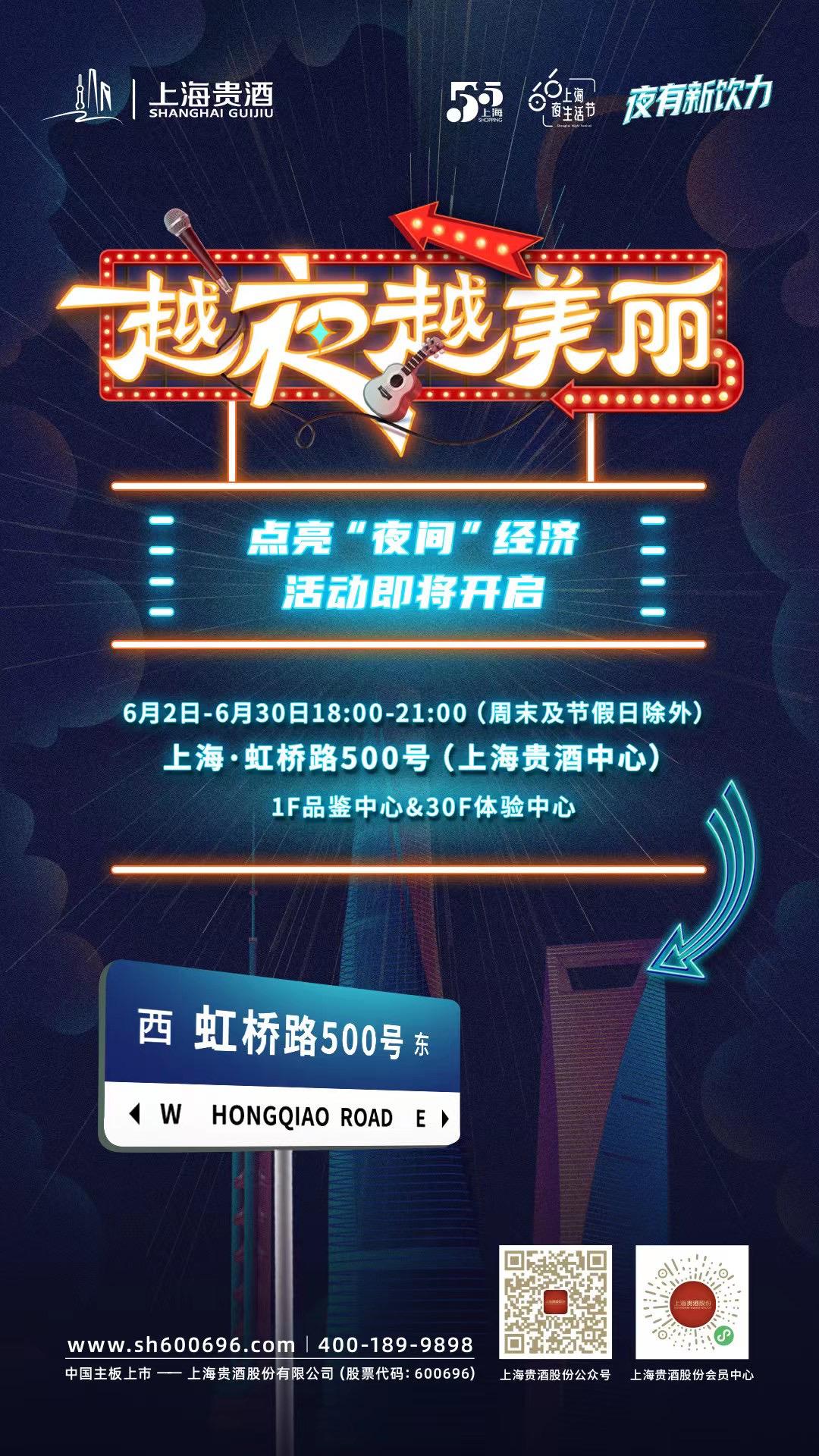 上海貴酒創(chuàng)新策劃的“虹橋路500號越夜越美麗”點亮“夜間”經(jīng)濟系列活動也將從6月2日啟幕,橫跨整個6月,邀請品牌摯友齊聚虹橋路500號——上海貴酒徐匯品鑒中心和體驗中心,點亮商圈潮流新“夜”態(tài),“飲”燃消費新活力。從沉浸品鑒、花式特調(diào)到音樂、美食、青春街舞、房車生活,上海貴酒不斷打破創(chuàng)新邊界,將上海精神和品牌元素融入活動設計中,打造出更高品質(zhì)、差異化的夜間消費場景,在夜色中點亮城市文化名片,讓魔都“越夜越美麗”!