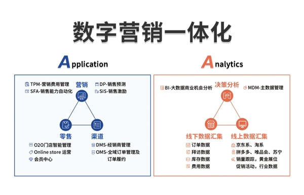 賽博威雙A模型,為企業(yè)搭建并打通相關系統(tǒng)(Application),通過數(shù)據(jù)洞察分析(Analytics)實現(xiàn)企業(yè) 私域數(shù)據(jù) 資產(chǎn)沉淀及數(shù)據(jù)智能分析,推動企業(yè)數(shù)據(jù)商業(yè)化應用。 雙A合璧,助力企業(yè)打破信息孤島,建立企業(yè)私域數(shù)據(jù)體系。在提升不同職能和部門之間的協(xié)同能力、建立創(chuàng)新及技術驅動的業(yè)務模式的同時,通過智能數(shù)據(jù)分析,激發(fā)企業(yè)營銷鏈路數(shù)據(jù)價值,輔助戰(zhàn)略決策,推動整個價值鏈智慧創(chuàng)造,助力實現(xiàn)業(yè)務可持續(xù)增長,為未來接入人工智能做好準備。