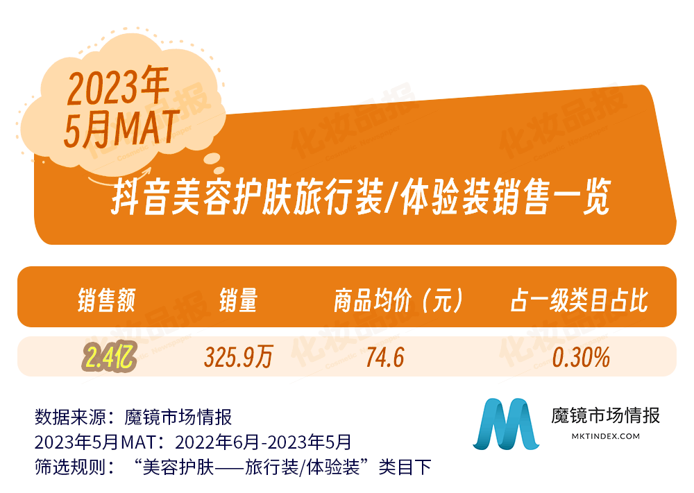 近日,國內(nèi)零售洞察公司魔鏡市場情報發(fā)布了一份關(guān)于化妝品旅行裝/體驗裝在各主流電商平臺的銷售調(diào)研報告。報告統(tǒng)計的類目主要針對彩妝、香水、美妝工具、美容護膚、美體和精油類旅行裝/體驗裝,統(tǒng)計調(diào)查的平臺涵蓋淘寶、天貓、抖音等,統(tǒng)計周期為2022年6月-2023年5月。