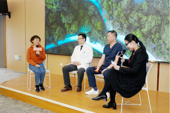 其中的芙蓉女士從四川遠(yuǎn)道而來,與兩位醫(yī)學(xué)大咖和主持人圍坐在一起,現(xiàn)場分享了自己患病以來的心路歷程和診療經(jīng)過,共同探討了內(nèi)(科)外(科)兼修實(shí)現(xiàn)長期生存之道的經(jīng)驗(yàn)與思路等話題。
