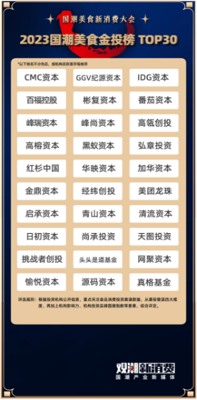 《2023國潮美食金投榜·TOP30》則用來表彰資本作為新消費(fèi)潮流興起的預(yù)見者、助推器與價(jià)值捕手,在企業(yè)發(fā)展的道路上所發(fā)揮的舉足輕重的作用。