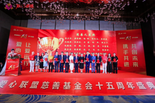 下午,愛心聯(lián)盟慈善基金會成立十五周年盛典隆重舉行。全國勞動模范、全國五一勞動獎?wù)芦@得者、全國道德模范、吉林省工商聯(lián)副主席、吉林省河南商會會長、愛心聯(lián)盟慈善基金會理事長李萬升,河南省政府駐上海辦副主任胡華杰,哈爾濱市政府駐上海辦經(jīng)協(xié)處處長田磊,中國浦東干部學(xué)院黨建研究中心主任吳濤,上海中信國旅總經(jīng)理羅良剛,山東馳恒投資發(fā)展有限公司董事長王久紅,昆山物流協(xié)會會長孫喜,來伊份股份有限公司高級副總裁趙漢利,新希望集團草根資本投資部部長許云龍,上海歐邦醫(yī)療管理有限公司創(chuàng)始人崔海茹,眼界(上海)健康管理有限公司創(chuàng)始人謝攖寧,浙江省有機產(chǎn)業(yè)協(xié)會理事長胡珊,上海妃魚股份高級副總裁李財鋒,愛心聯(lián)盟慈善基金會執(zhí)行理事長楊崢,以及上海市工商聯(lián)直屬商會和各省市在滬異地商會秘書長等來自全國各地的精英和愛心聯(lián)盟成員300余人歡聚一堂,共同慶祝愛心聯(lián)盟慈善基金會成立十五周年。