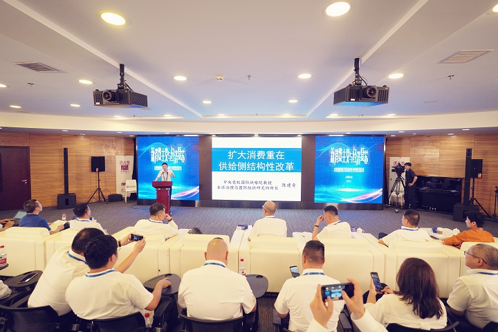 7月21日,《新消費(fèi)主義與經(jīng)濟(jì)復(fù)蘇》研討會(huì)在人民日?qǐng)?bào)社召開。國(guó)吉祥控股集團(tuán)董事局副主席李曉春在論壇以《快消品行業(yè)消費(fèi)新業(yè)態(tài)和新模式》主題進(jìn)行了主旨發(fā)言。中共中央黨校國(guó)際戰(zhàn)略研究院全球治理與國(guó)際組織研究所所長(zhǎng)陳建奇,國(guó)務(wù)院發(fā)展研究中心市場(chǎng)經(jīng)濟(jì)研究所副所長(zhǎng)王青,中國(guó)人民大學(xué)商學(xué)院教授、博士生導(dǎo)師姚建明,北京大學(xué)經(jīng)濟(jì)學(xué)院副教授薛旭,中國(guó)管理科學(xué)研究院商業(yè)模式研究所副所長(zhǎng)李鋼,北京聞中聞產(chǎn)經(jīng)咨詢首席顧問龍河聞,北京大學(xué)經(jīng)濟(jì)學(xué)院副教授薛旭,渤信資本創(chuàng)始合伙人曲開宇,泰悅青藤(北京)營(yíng)銷科技有限公司創(chuàng)始合伙人宋軒名出席會(huì)議并在會(huì)上做發(fā)言。