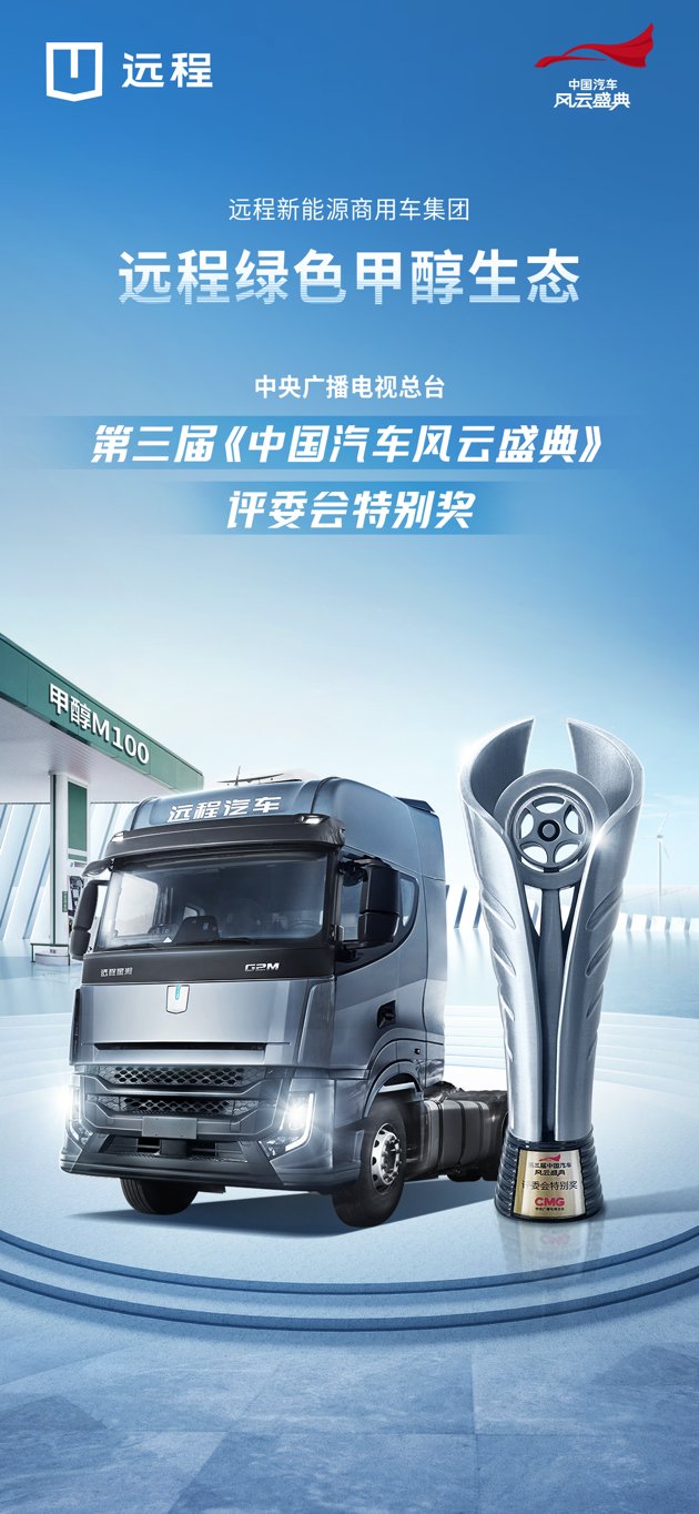 2023年4月7日,在中央廣播電視總臺(tái)主辦的第三屆《中國(guó)汽車(chē)風(fēng)云盛典》頒獎(jiǎng)典禮上,遠(yuǎn)程綠色甲醇生態(tài)榮獲評(píng)委會(huì)特別獎(jiǎng),成為首個(gè)以商用車(chē)為主體的獲獎(jiǎng)企業(yè)。