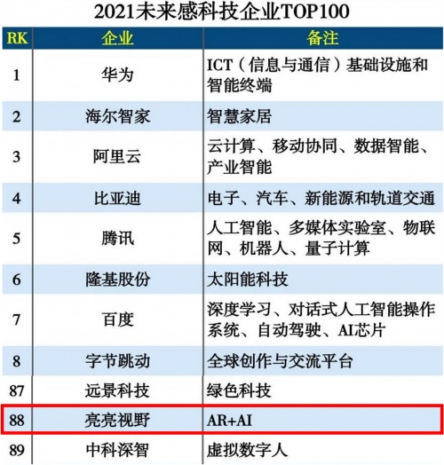 近日,互聯(lián)網(wǎng)周刊發(fā)布“2021未來感科技企業(yè)TOP100”榜單。榜單聚焦前沿科學(xué)技術(shù),并且能夠把科技成果轉(zhuǎn)化為可觸達(dá)的產(chǎn)品。憑借七年高質(zhì)量穩(wěn)健發(fā)展和商業(yè)模式創(chuàng)新,作為行業(yè)獨(dú)角獸的亮亮視野在AR+AI領(lǐng)域的深耕顯而易見,與華為、阿里云、比亞迪、騰訊、百度等中國一線科技公司一道入選榜單。
