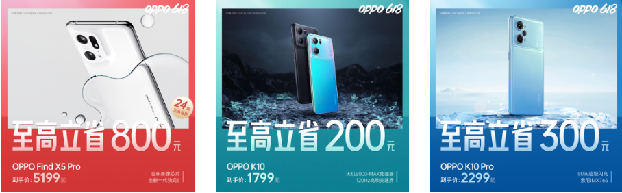 除了OPPO Find N之外,OPPO另一款高端旗艦Find X5系列也有最至立省800元的優(yōu)惠,Find X5shi 3499元起,Find X5 Pro是5199元起。同樣主打性能和游戲體驗(yàn)的人氣機(jī)型OPPO K10系列也有優(yōu)惠,其中OPPO K10至高立省200的優(yōu)惠,實(shí)際到手價(jià)僅需1799元起。