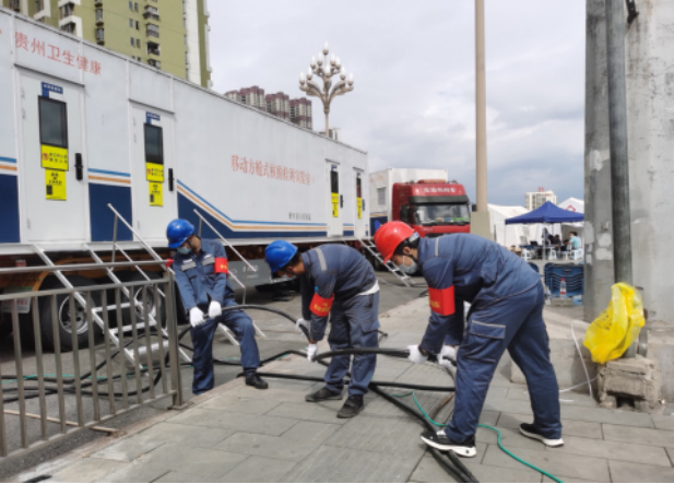 貴州電網(wǎng)于9月3日接到任務(wù)之時,用30分鐘組建青年突擊隊(duì),10小時完成6臺綜合配電箱及360米低壓電纜接入,為11臺移動方艙式核酸檢測實(shí)驗(yàn)室用電提供“雙保險”;戰(zhàn)役打響后,多支青年突擊隊(duì)對將軍山醫(yī)院等32個疫情防控醫(yī)療機(jī)構(gòu)及筑城廣場、金陽奧林匹克體育中心、花溪大學(xué)城等48個核酸樣本集中檢測方艙實(shí)現(xiàn)拉線送電和全日現(xiàn)場值守。