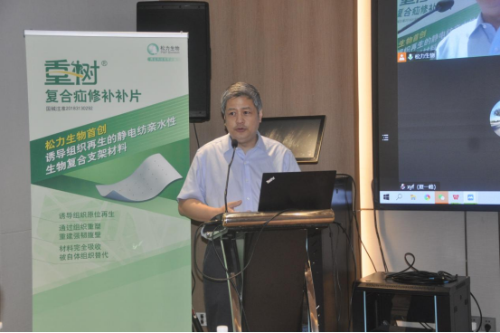 松力生物聯(lián)合創(chuàng)始人、副總經(jīng)理楊莉分享了松力生物的軟組織誘導(dǎo)性生物材料的研究進展,她介紹稱,松力生物可再生復(fù)合疝修補補片由松力生物自主研發(fā)的靜電紡親水性軟組織誘導(dǎo)性生物材料制成,此外,分享了這種新型復(fù)合生物材料在動物實驗中成功誘導(dǎo)骨骼肌、韌帶、肩袖、子宮壁、腸壁組織再生的研究成果。