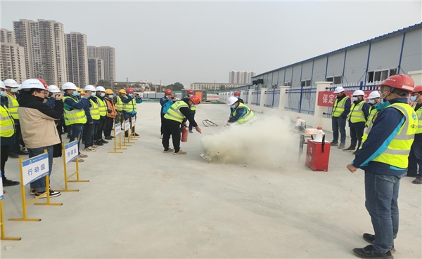 最后,在現(xiàn)場(chǎng)開展模擬火災(zāi)救援演練,項(xiàng)目管理人員與施工作業(yè)人員進(jìn)行現(xiàn)場(chǎng)滅火實(shí)操演練。