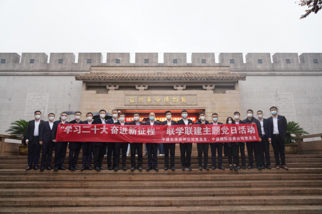 11月17日,蘇州公司黨總支與中建國(guó)際投資公司黨總支攜手共赴蘇州革命博物館、中共蘇州獨(dú)立支部舊址開展“學(xué)習(xí)二十大 奮進(jìn)新征程”聯(lián)學(xué)聯(lián)建主題黨日活動(dòng)。東孚蘇州公司黨總支部分黨員代表,中建國(guó)際投資公司黨總支部分黨員、入黨積極分子代表共計(jì)20余人參加活動(dòng)。