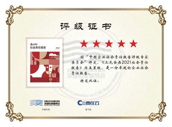 近年來,三元食品始終保持與利益相關方充分交流與溝通。2022年,三元食品發(fā)布的第8份年度社會責任報告,并連續(xù)四年獲評中國企業(yè)社會責任報告評級專家委員會"五星級"評價。評級專家委員會評價,《北京三元食品股份有限公司2021社會責任報告》是一份卓越的企業(yè)社會責任報告。