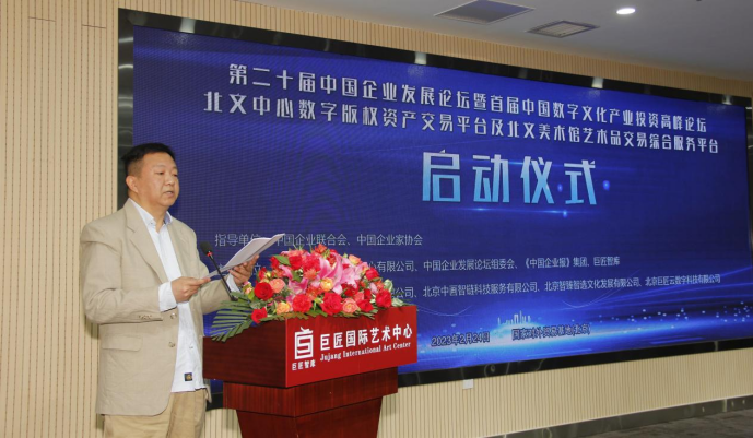 2023年2月24日,第二十屆中國企業(yè)發(fā)展論壇暨首屆中國數(shù)字文化產(chǎn)業(yè)投資高峰論壇啟動(dòng)儀式在國家對外文化貿(mào)易基地(北京)舉行。與此同時(shí),北文美術(shù)館藝術(shù)品交易服務(wù)平臺(tái)、北文中心數(shù)字版權(quán)資產(chǎn)發(fā)行平臺(tái)啟動(dòng)儀式也如期舉辦。