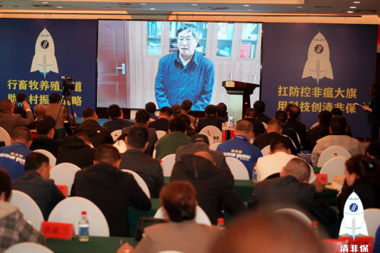 中國(guó)科學(xué)院院士、中國(guó)科學(xué)院亞熱帶農(nóng)業(yè)生態(tài)研究所首席研究員印遇龍,以視頻方式參會(huì),發(fā)表了講話,祝賀科技養(yǎng)豬生產(chǎn)力促進(jìn)中心成立授牌、生物工程試驗(yàn)基地成立暨非洲豬瘟防控新技術(shù)、新產(chǎn)品、新方案的研發(fā)成功和大會(huì)的召開(kāi),從堅(jiān)定生豬養(yǎng)殖信心、打造著名豬肉品牌、重視非洲豬瘟防控、培養(yǎng)養(yǎng)殖人才隊(duì)伍等四方面分享介紹了經(jīng)驗(yàn)。