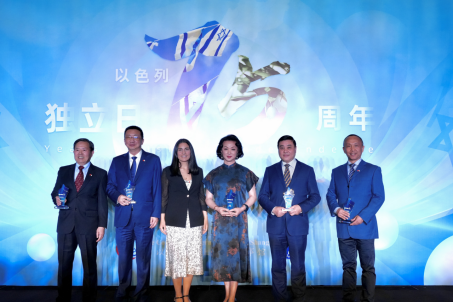 活動現(xiàn)場,上海兒童醫(yī)學(xué)中心SDR手術(shù)中心主任肖波獲得“促進中以醫(yī)療技術(shù)交流”杰出貢獻獎,上海猶太難民紀(jì)念館館長陳儉獲得“致力于上海猶太歷史保護”杰出貢獻獎,上海金星舞蹈團藝術(shù)總監(jiān)金星獲得“促進中以藝術(shù)文化交流”杰出貢獻獎,上海鉆石交易所總裁林強獲得“促進中以商貿(mào)與文化交流”杰出貢獻獎,南京大學(xué)猶太文化研究所所長徐新獲得“致力于猶太文化研究與中以教育交流”杰出貢獻獎,白樂濰為獲獎嘉賓頒獎。這也是以色列總領(lǐng)事館建館以來,首次向中國人授予此榮譽。