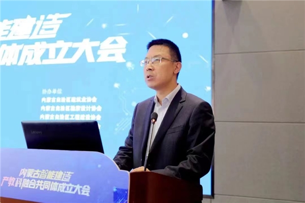 王剛講話,他指出,內(nèi)蒙古智能建造產(chǎn)教科融合共同體的成立,標(biāo)志著內(nèi)蒙古自治區(qū)智能化建設(shè)領(lǐng)域的職業(yè)教育邁入了一個(gè)新的發(fā)展階段,對(duì)加快內(nèi)蒙古自治區(qū)建筑行業(yè)轉(zhuǎn)型升級(jí),推動(dòng)內(nèi)蒙古自治區(qū)經(jīng)濟(jì)發(fā)展具有重要意義,希望共同體以及各成員單位把握綠色建材、裝配式建筑這一大發(fā)展方向,注重智能化與各種綠色低碳材料、工業(yè)化部品部件、清潔能源和超低能耗建筑的結(jié)合,為企業(yè)和社會(huì)培養(yǎng)、輸送更多高素質(zhì)技術(shù)技能人才,在校企合作中幫助企業(yè)、行業(yè)孵化更加成熟的新技術(shù)體系,共同提升內(nèi)蒙古智能建造產(chǎn)教科融合共同體對(duì)建設(shè)現(xiàn)代產(chǎn)業(yè)體系的支撐作用。