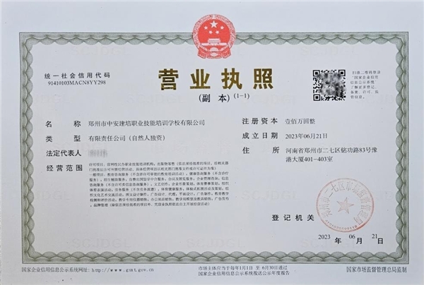 6月21日,河南中安建培教育科技有限公司(簡(jiǎn)稱“河南中安”)旗下鄭州市中安建培職業(yè)技能培訓(xùn)學(xué)校有限公司取得《中華人民共和國(guó)民辦學(xué)校辦學(xué)許可證》,成立職業(yè)技能培訓(xùn)學(xué)校。這是河南中安繼招商引資后的又一重要里程碑事件,對(duì)河南中安持續(xù)提升合規(guī)化經(jīng)營(yíng)水平具有重大意義。