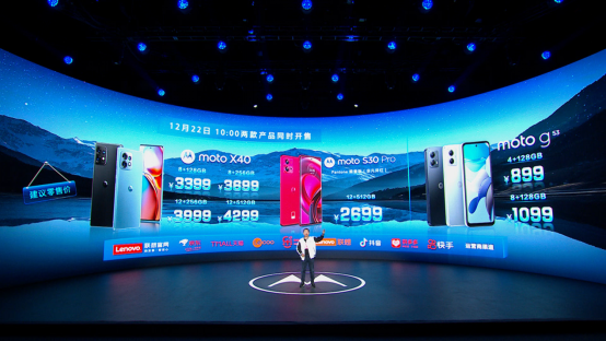 2022年12月15日19時(shí)30分,聯(lián)想moto召開了以“心無畏,赴山?!睘橹黝}的新品發(fā)布會,正式發(fā)布了moto X40、moto G53和moto S30 Pro潘通限量版(非凡洋紅)三款新品。其中,“手機(jī)中的SUV”moto X40,首發(fā)價(jià)3399元起;“千元5G全擊手”moto G53,首發(fā)價(jià)899元起;而moto S30 Pro潘通限量版(非凡洋紅),首發(fā)價(jià)則是2699元起。