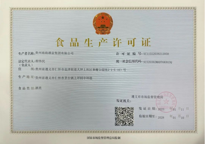 1月11日,南將酒業(yè)集團新車間第一輪次順利出酒,產量達標品質好。同時,南將酒業(yè)集團新的食品生產許可證成功下證。