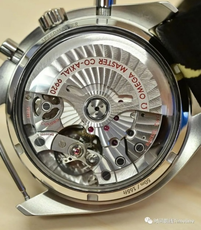 超霸Super Racing使用歐米茄新型9920自動(dòng)計(jì)時(shí)機(jī)芯,機(jī)芯總體上和歐米茄9300/9900系列機(jī)芯一致。
