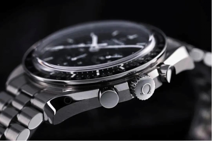 腕表的表殼采用精鋼材質(zhì),表殼側(cè)面的表冠及計時按鈕同樣采用了這一材質(zhì)。歐米茄采用的是316L精鋼。這種材質(zhì)以耐腐蝕、拋光后光澤度高而著稱,通常是打造在高強度環(huán)境下使用腕表的理想材質(zhì)。