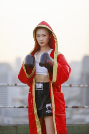 于是我在想如果是參加比賽的話,那么就有可能會遇到在全球范圍之內能跟我有同樣量級的職業(yè)拳擊手。果不其然,這一次去泰國比賽就遇到了Siritorn,她也是108磅量級的職業(yè)拳擊手,從小訓練泰拳,所以經由這我就開啟了自己的職業(yè)比賽之路。我覺得拳擊比賽對我來講就是一次拳擊的集中檢驗,7年訓練的結果,將在這一次的比賽當中完成一次考試。