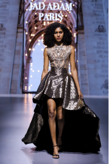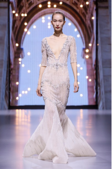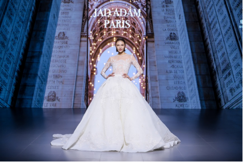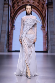 在充滿異域風(fēng)情的“巴爾米拉女王”主題發(fā)布中,法國(guó)高定女裝設(shè)計(jì)師JadAdam攜手紹興永耀紡織品有限公司、紹興晶遠(yuǎn)創(chuàng)意設(shè)計(jì)有限公司展現(xiàn)了尋找內(nèi)心平靜的啟蒙之旅的獨(dú)特過(guò)程。設(shè)計(jì)師從柯橋優(yōu)秀的面料中獲得啟發(fā),在華麗的禮服裙中采用了大量的刺繡及繡片繡珠工藝。兩家企業(yè)提供的閃光高密度歐根紗、銀色金屬絲、清透網(wǎng)眼等面料,花型立體簡(jiǎn)潔、色彩透亮多變,為設(shè)計(jì)師帶來(lái)了豐富的靈感。從晚禮服、婚紗到高級(jí)時(shí)裝,JadAdam通過(guò)特有的藝術(shù)表現(xiàn)手法詮釋了本次禮服設(shè)計(jì)。