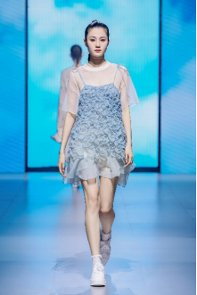 在“童年”主題秀演中,法國(guó)設(shè)計(jì)師聯(lián)袂浙江懿紗紡織科技有限公司、紹興柯橋豐旺紡織品有限公司,圍繞兒童的藝術(shù)、回到學(xué)校、童年的回憶三個(gè)子主題,共同演繹了童年的懷舊故事。設(shè)計(jì)師以精細(xì)的絎縫、印染、明線縫紉及自然著色的效果制作服裝和圖案,在工藝上采用了法國(guó)特有的編織技術(shù),并結(jié)合WALTZ系列花紗、三醋酸、錦滌歐根紗、六角硬網(wǎng)等面料輕薄有型、色彩飽滿的特色,最大程度實(shí)現(xiàn)了紡織工藝的價(jià)值化。特別是在傳統(tǒng)手工藝非遺、生態(tài)環(huán)保材料等系列元素的加持下,為整場(chǎng)秀演增添了可持續(xù)時(shí)尚的價(jià)值。