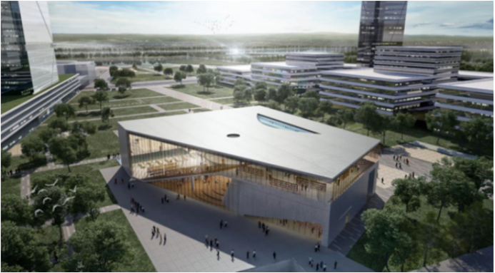 投資2億元的高新區(qū)圖書館,如同一個一個迎向東方的巨型階梯,是河源首個異形清水混凝土結構工程,勾勒出極富想象力的空間。