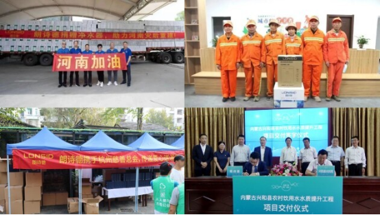 除了高考助力以外,朗詩(shī)德凈水器也曾積極參與過(guò)許多其他公益活動(dòng)。2019年,朗詩(shī)德凈水器積極助力內(nèi)蒙凈水扶貧,憑借對(duì)復(fù)雜水質(zhì)的多年研究,為三千多戶(hù)水質(zhì)不達(dá)標(biāo)的農(nóng)村人家,安裝上朗詩(shī)德L2凈水器,惠及農(nóng)戶(hù)上萬(wàn)人;2020年,朗詩(shī)德為湖南省城步縣捐贈(zèng)防疫物質(zhì);2021年7月,朗詩(shī)德公司在河南省發(fā)生特大暴雨后,幫助河南災(zāi)后重建,捐贈(zèng)價(jià)值上千萬(wàn)的朗詩(shī)德凈水器,助力河南災(zāi)后重建;同年9月,朗詩(shī)德凈水器通過(guò)莆田慈善總會(huì)、杭州慈善總會(huì)捐贈(zèng)千盒愛(ài)心月餅,向醫(yī)護(hù)人員和一線(xiàn)勞動(dòng)者送上這份獨(dú)屬于中秋的溫暖;2022年,朗詩(shī)德給北白象鎮(zhèn)勞動(dòng)者環(huán)衛(wèi)驛站的工人們送去了一臺(tái)L3純水機(jī)以及GA406K-2管線(xiàn)機(jī),有效解決了環(huán)衛(wèi)工人“喝水難”的問(wèn)題,讓環(huán)衛(wèi)工人感受到社會(huì)的關(guān)愛(ài)和城市的溫暖。