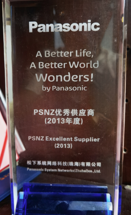 ▲松下授予裕威的“優(yōu)秀供應(yīng)商”獎牌