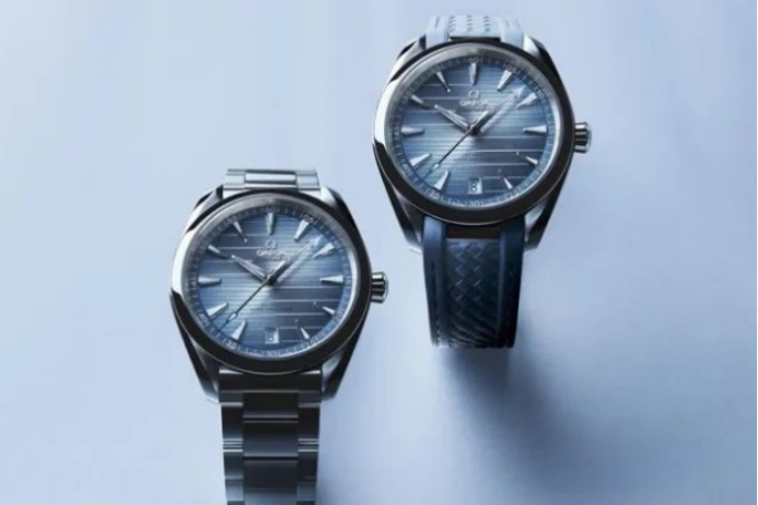 150米這個(gè)深度在海洋的層次中屬于照光層。這次歐米茄海馬紀(jì)念款在150米的防水區(qū)間,有三款作品。分別是 Aqua Terra 38毫米,41毫米和世界時(shí)腕表。表盤淺藍(lán)色的漸變層次讓人聯(lián)想到夏日陽光下清澈透明的海水。