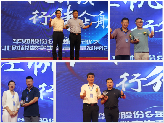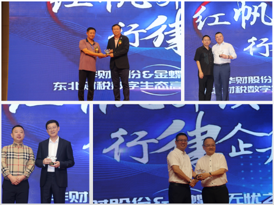 頒獎(jiǎng)嘉賓:北京華財(cái)會(huì)計(jì)股份有限公司董事長王久立,金蝶賬無憂CEO祝錦華,大連數(shù)宇宙產(chǎn)業(yè)園有限公司總經(jīng)理徐林。