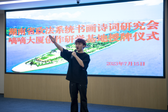詩(shī)以言志,文以化人。以法護(hù)商,以商促文。7月15日上午,坐落于長(zhǎng)沙市芙蓉區(qū)“中央文化區(qū)”的嘀嘀大廈五樓會(huì)議室高朋滿(mǎn)座,熱鬧非凡。“湖南省政法文化嘀嘀大廈創(chuàng)研基地”簽約暨掛牌儀式在此隆重舉行。省政法系統(tǒng)書(shū)畫(huà)詩(shī)詞研究會(huì)主席團(tuán)成員彭對(duì)喜,副會(huì)長(zhǎng)劉慶富;詩(shī)詞分會(huì)主席陳嶺及副主席賀曦、周加良、江世炎;書(shū)法分會(huì)主席陳祥松、副主席吳若順;長(zhǎng)沙法官文聯(lián)副主席胡軍軍等領(lǐng)導(dǎo)和嘉賓出席活動(dòng)。