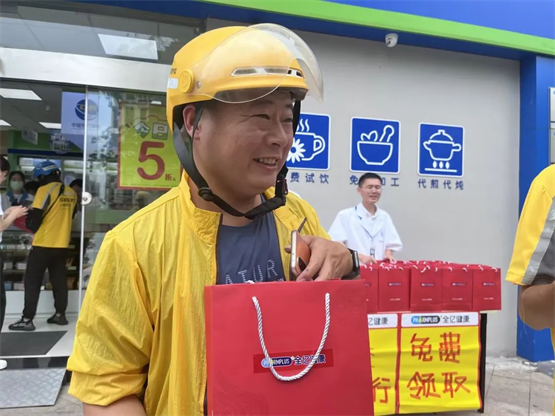 7月6日,全億大藥房為備受“烤”驗(yàn)的騎手們送上防暑大禮包。