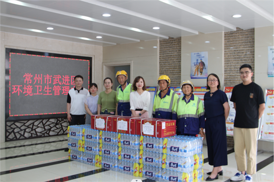 全億健康常州分部總經(jīng)理張?jiān)葡蛐燎诠ぷ鞯沫h(huán)衛(wèi)工們送上誠摯的問候,再三叮囑夏季高溫天氣,大家要時(shí)刻注意身體狀況,做好防暑降溫和防疫工作,感謝他們用勤勞的雙手為我們營造了整潔、舒適的環(huán)境。