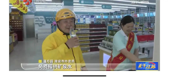 “最近天氣太熱了,廣濟(jì)醫(yī)藥給我們準(zhǔn)備了水跟藿香正氣液,內(nèi)心非常感激?!币晃磺皝眍I(lǐng)水的外賣員由衷地感謝道。