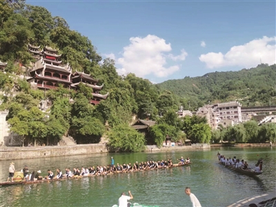 舞陽(yáng)河,青龍洞,綠水青山看鎮(zhèn)遠(yuǎn)。依托古城國(guó)家5A級(jí)旅游景區(qū)等10張國(guó)家級(jí)文化旅游“名片”,鎮(zhèn)遠(yuǎn)縣近年來(lái)創(chuàng)新體制機(jī)制,聚焦宜居、宜業(yè)、宜游三個(gè)核心功能,持續(xù)開發(fā)境內(nèi)文化資源,豐富旅游業(yè)態(tài),在推進(jìn)“文化名城”“旅游名城”建設(shè)的同時(shí),縣域經(jīng)濟(jì)不斷增長(zhǎng),與之相關(guān)的文旅企業(yè)借勢(shì)增長(zhǎng),截至目前,涉旅文化旅游經(jīng)營(yíng)單位1600余家,旅游綜合收入89.38億元。