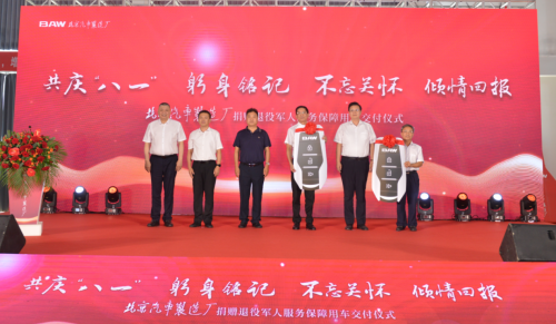 7月28日,北京汽車制造廠在青島總部基地隆重舉行“共慶‘八一’,躬身銘記,不忘關(guān)懷,傾情回報”捐贈退伍軍人服務(wù)保障用車交付儀式,以實際行動做出擁軍表率,為建軍96周年獻禮。原空軍指揮學(xué)院副院長朱和平少將、中國退役軍人就業(yè)創(chuàng)業(yè)服務(wù)促進會理事長王義少將、中國退役軍人就業(yè)創(chuàng)業(yè)服務(wù)促進會常務(wù)副理事長林崗少將、中國汽車工業(yè)協(xié)會常務(wù)副會長兼秘書長付炳鋒、山東省退役軍人事務(wù)廳副廳長劉興磊以及各界領(lǐng)導(dǎo)嘉賓共計200余人出席了本次儀式,北京汽車制造廠董事長陸付軍在現(xiàn)場遞交了此次捐贈的BAW卡路里皮卡新車鑰匙。