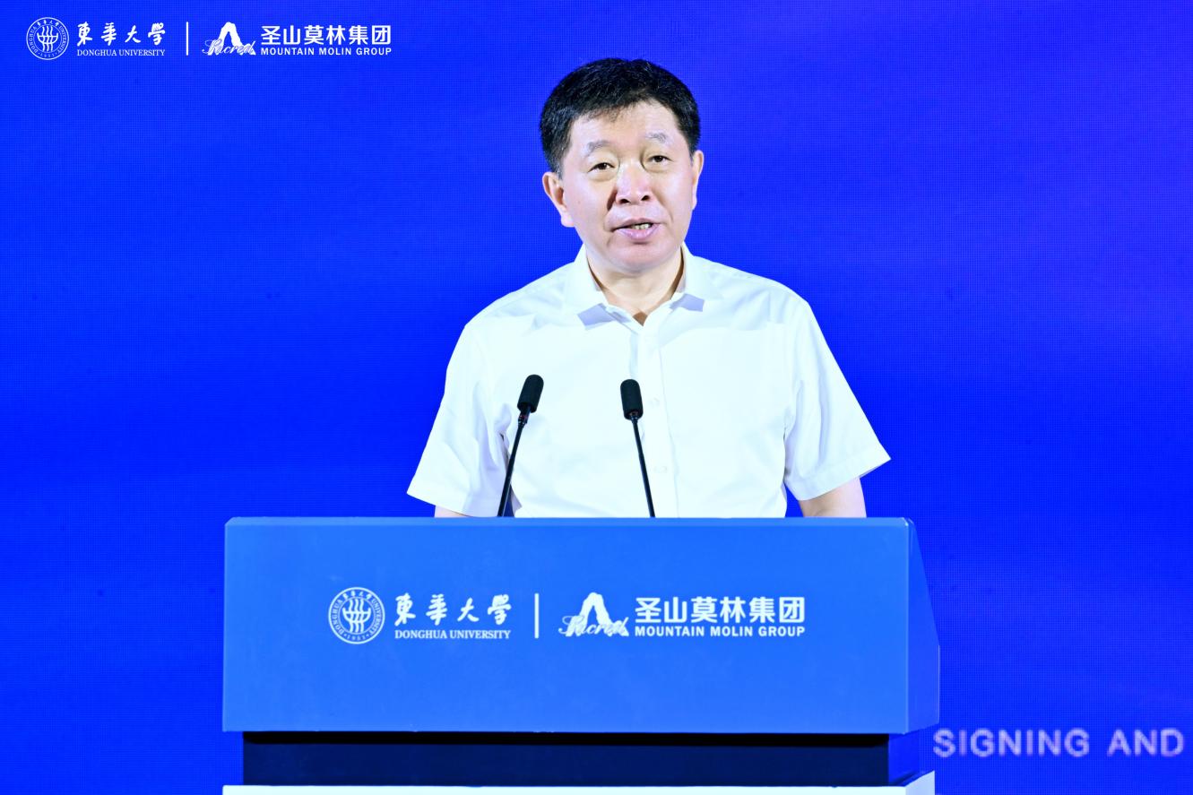 中國工程院院士、東華大學(xué)校長俞建勇出席儀式并致辭,他表示,東華大學(xué)是新中國成立的第一所紡織高等學(xué)府,也是教育部直屬、國家“211 工程”、國家“雙一流”建設(shè)高校。五糧液集團(tuán)是“全球規(guī)模最大、生態(tài)環(huán)境最佳”和“最有價值品牌”特大型現(xiàn)代企業(yè),圣山莫林集團(tuán)作為五糧液集團(tuán)多元板塊子集團(tuán),深耕紡織服裝行業(yè),積極服務(wù)地方經(jīng)濟(jì)發(fā)展。此次東華大學(xué)與圣山莫林集團(tuán)合作設(shè)立聯(lián)合創(chuàng)新中心,是貫徹落實黨的二十大對教育、科技、人才工作統(tǒng)籌部署的重要舉措,是雙方深化科教融合、產(chǎn)教融合,搶抓機(jī)遇、共謀發(fā)展的新思路與新探索,是雙方“情相融”“力相聚”,互惠共贏、共謀發(fā)展的新起點。希望雙方以共建“東華大學(xué)-圣山莫林集團(tuán)聯(lián)合創(chuàng)新中心”為契機(jī),充分發(fā)揮東華大學(xué)在紡織、材料等前沿領(lǐng)域的研發(fā)和創(chuàng)新優(yōu)勢以及圣山莫林集團(tuán)的市場和資金優(yōu)勢,在時尚設(shè)計、面料開發(fā)、服裝研發(fā)、成果轉(zhuǎn)化以及畢業(yè)生就業(yè)等方面開展更高層次的交流與合作,合力譜寫校企合作、產(chǎn)教融合的新篇章。