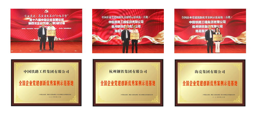 為了更加深入的推廣優(yōu)秀案例企業(yè)的黨建經(jīng)驗,發(fā)揮榜樣的示范作用,促進(jìn)優(yōu)秀案例企業(yè)之間相互學(xué)習(xí)、考察、交流,共同推動企業(yè)黨建創(chuàng)新發(fā)展,全國企業(yè)黨建創(chuàng)新優(yōu)秀案例征集活動組委會在本屆200家優(yōu)秀案例企業(yè)中,開展了“全國企業(yè)黨建創(chuàng)新優(yōu)秀案例示范基地”征集和申報工作。在各企業(yè)黨委申報的基礎(chǔ)上經(jīng)過審查和考核,決定首批授予中國鐵路工程集團(tuán)有限公司、杭州鋼鐵集團(tuán)有限公司、海亮集團(tuán)有限公司“全國企業(yè)黨建創(chuàng)新優(yōu)秀案例示范基地”稱號。